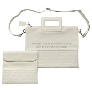 תיק טלית תפילין דמוי עור ברכת כהנים לבן אותיות כסף