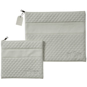 כיסוי טלית ותפילין דמוי עור לבן קלאסי